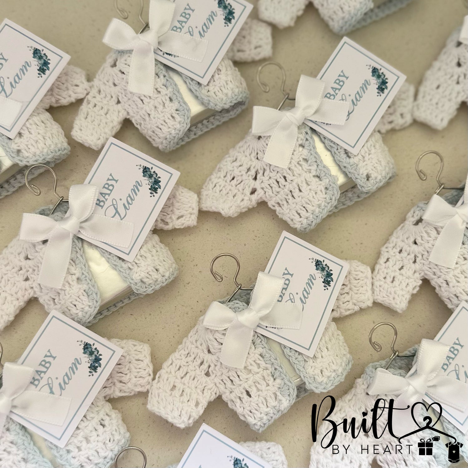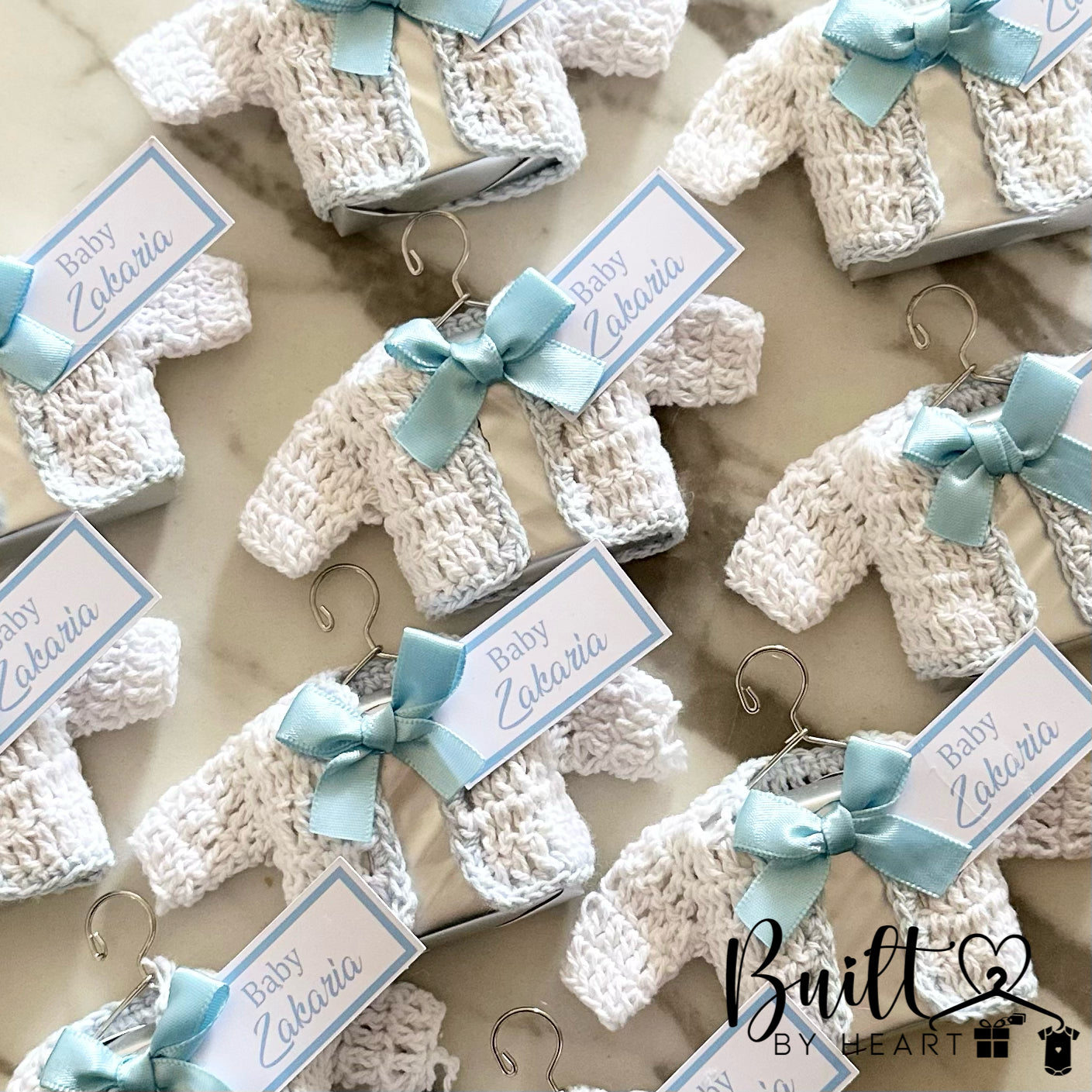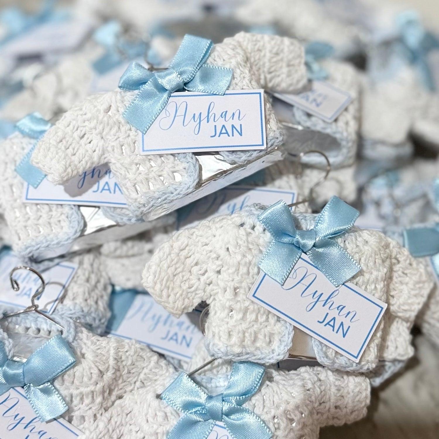 Let us make your next event stand out with these adorable mini knit choc cardigans finished off with a personalised tag, bow & mini coat hanger.