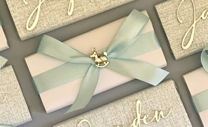 Let us make your next event stand out with these gorgeous rectangle chocs finished off with a textured wrap, bow & cute little horse pendant !