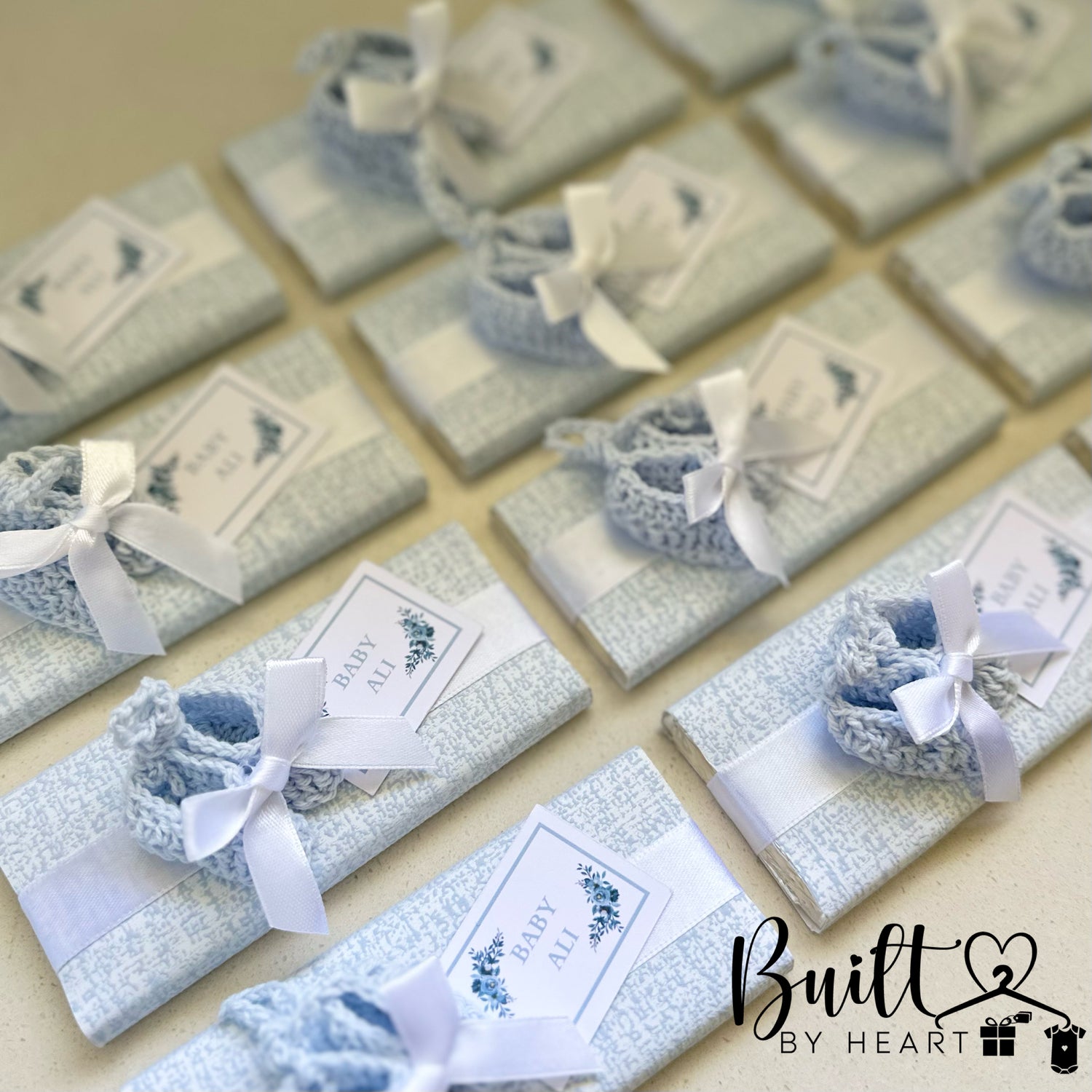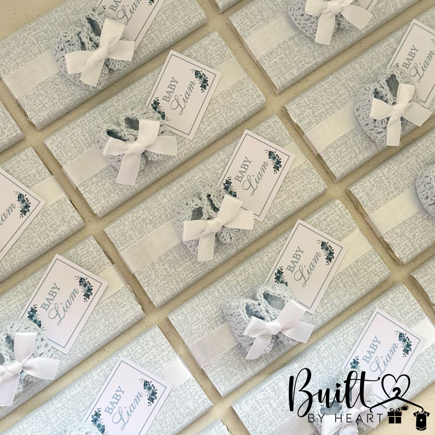 Let us make your next event stand out with these beautifully made textured wrap chocs finished off with a personalised tag & mini crochet boots !