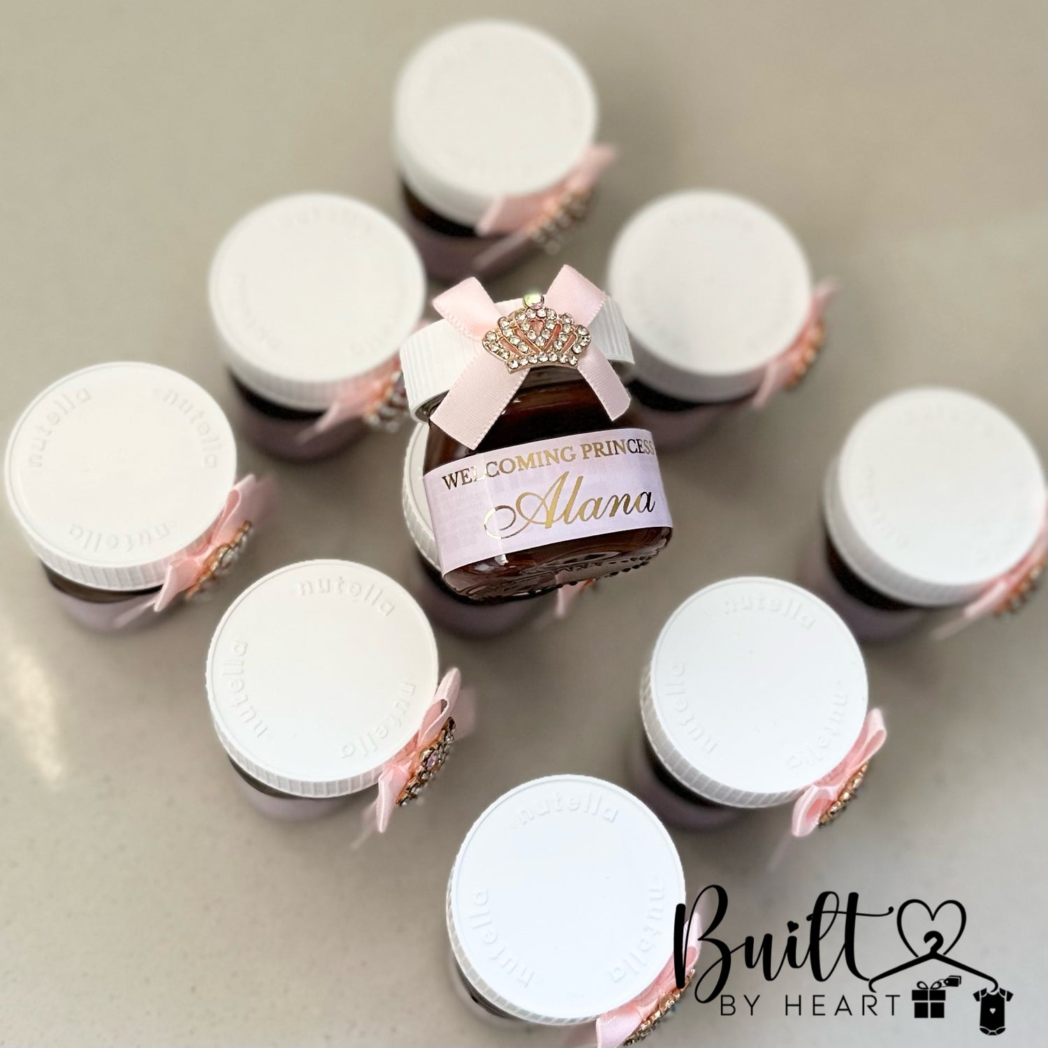 Let us make your next event stand out with these super cute nutella jars finished off with a personalised sticker, bow and gorgeous crown charm.