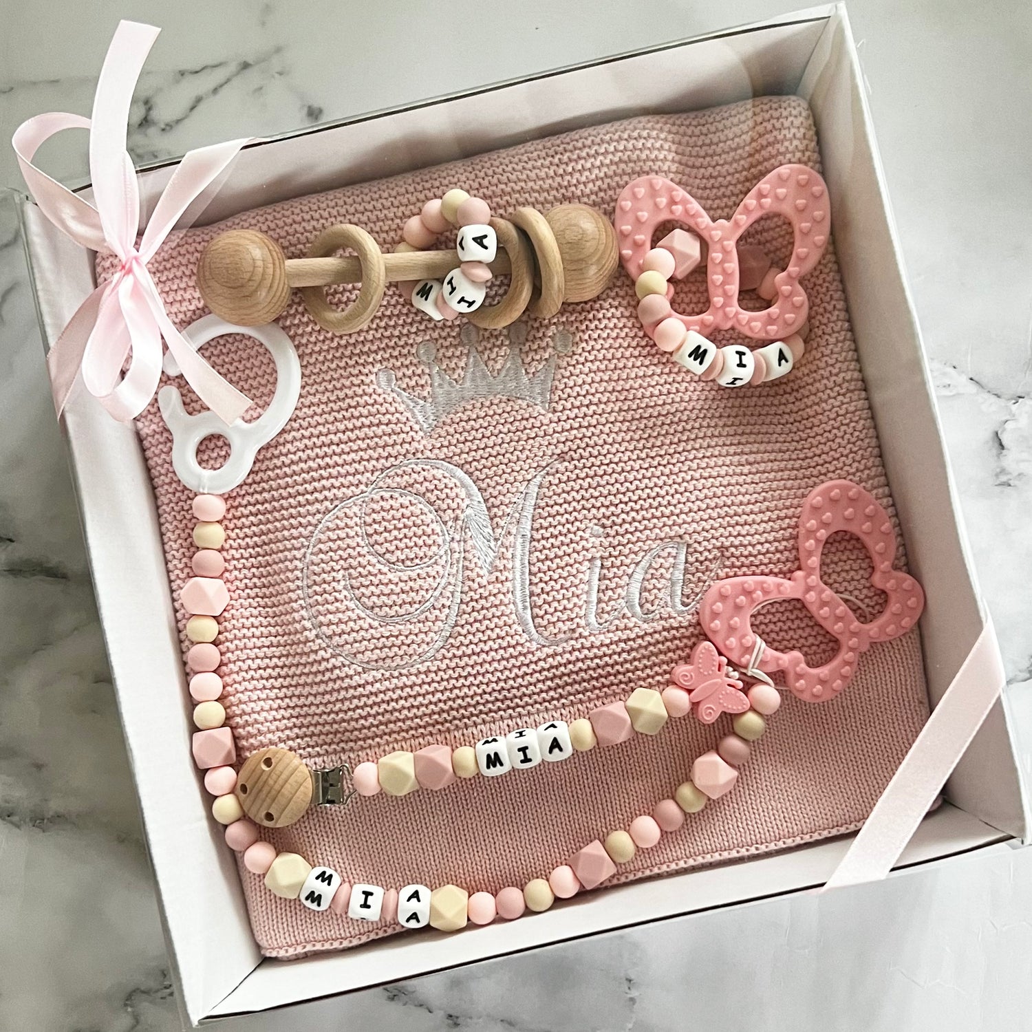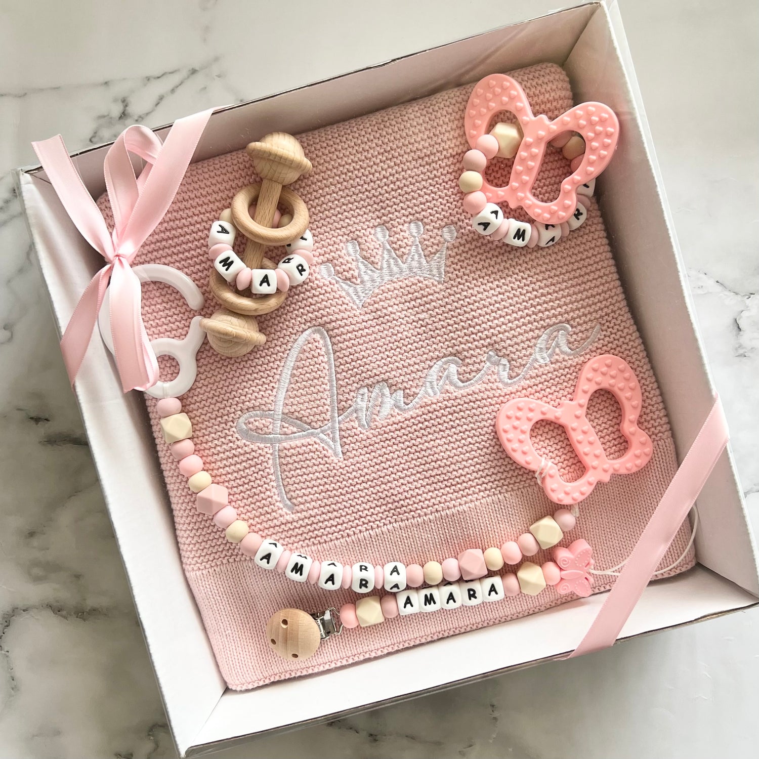 - 1x personalised teething ring