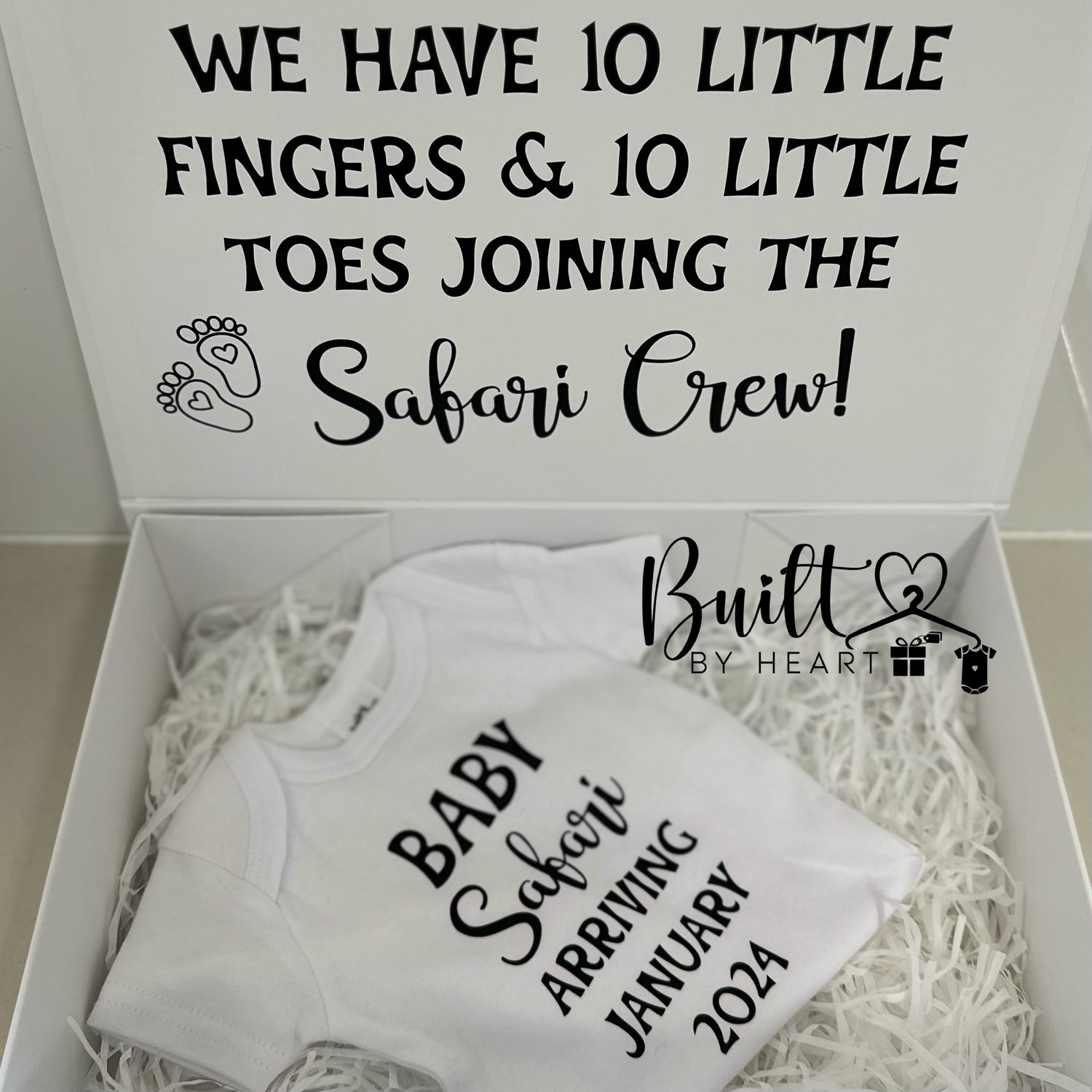 Why not make it extra special with our personalised baby onesie & box when telling that special someone whether its a family member or a partner!