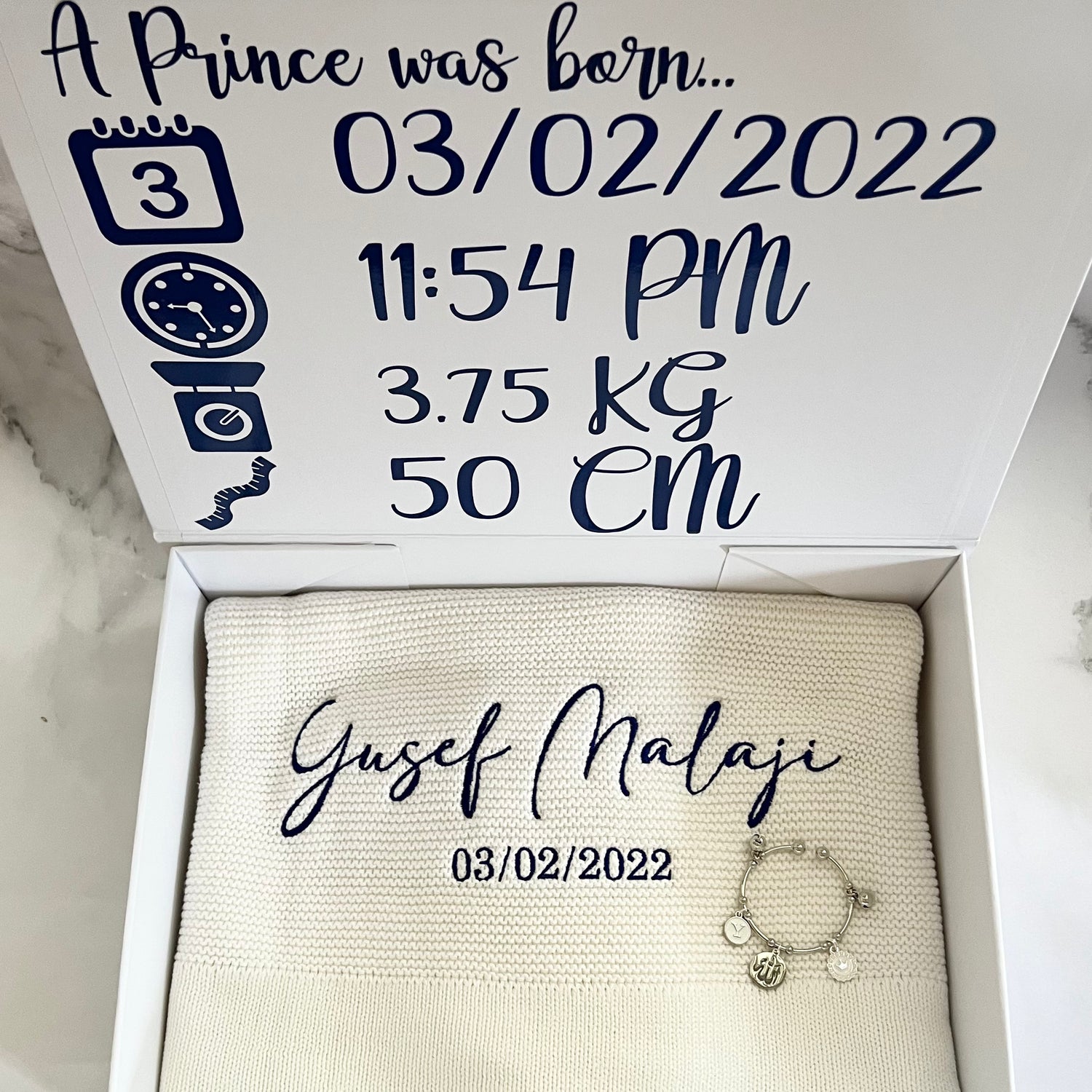 - 1x personalised birth detail keepsake box