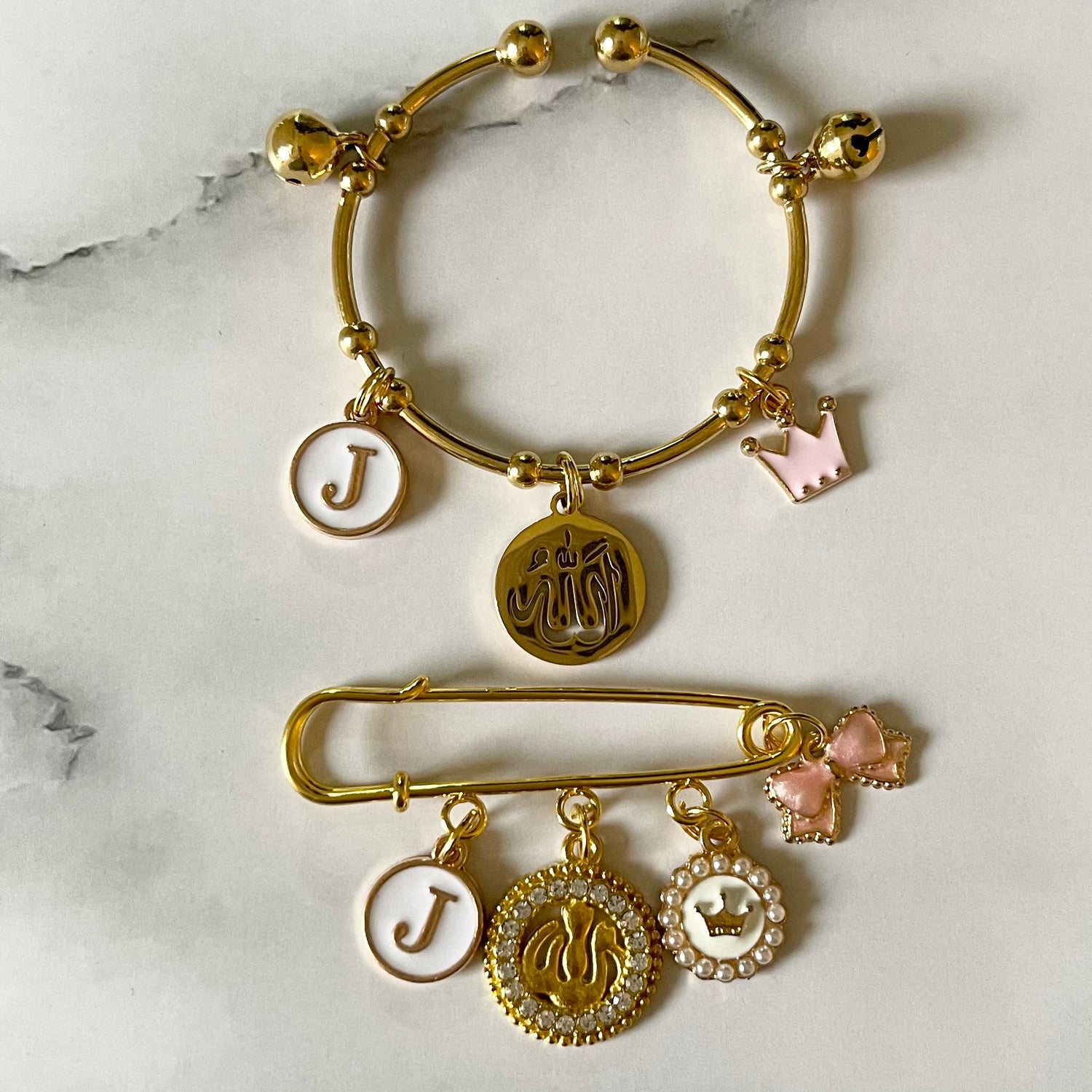 We offer a range of baby jewellery including personalised baby brooch pins and bangles.
