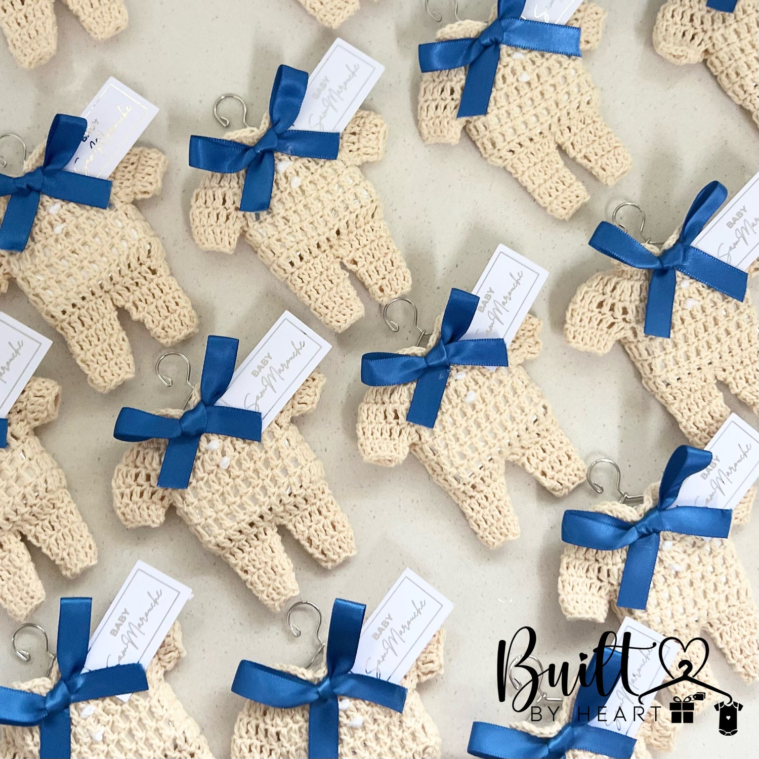 Let us make your next event stand out with these adorable mini knit choc onesies finished off with a personalised tag & bow .