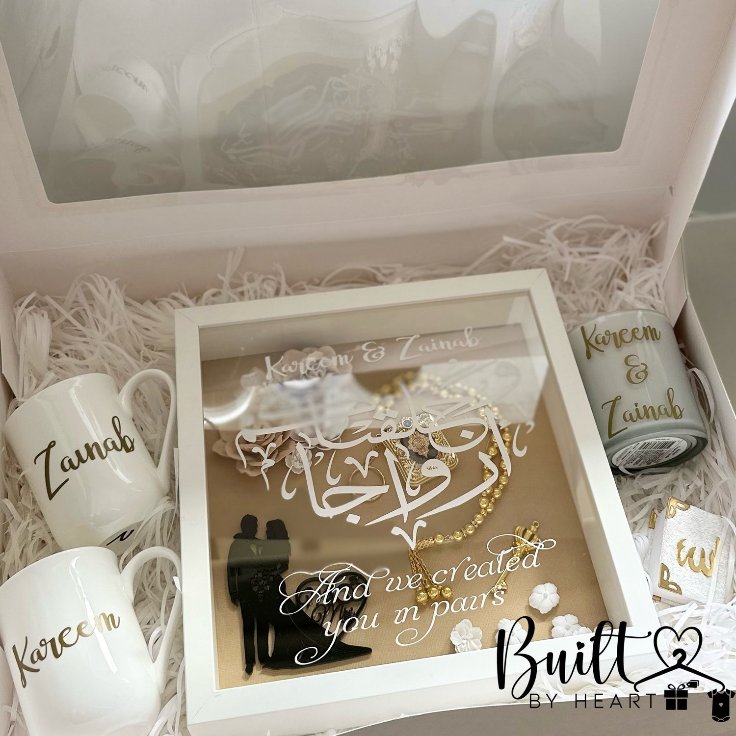 What better way to gift a new couple than this gorgeous box filled with classy & useful items that they will cherish for a lifetime !
