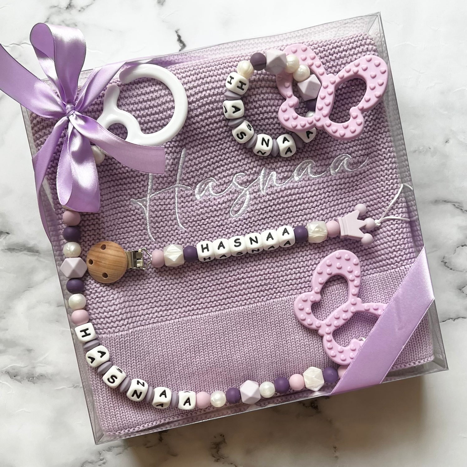 - 1x personalised teething ring