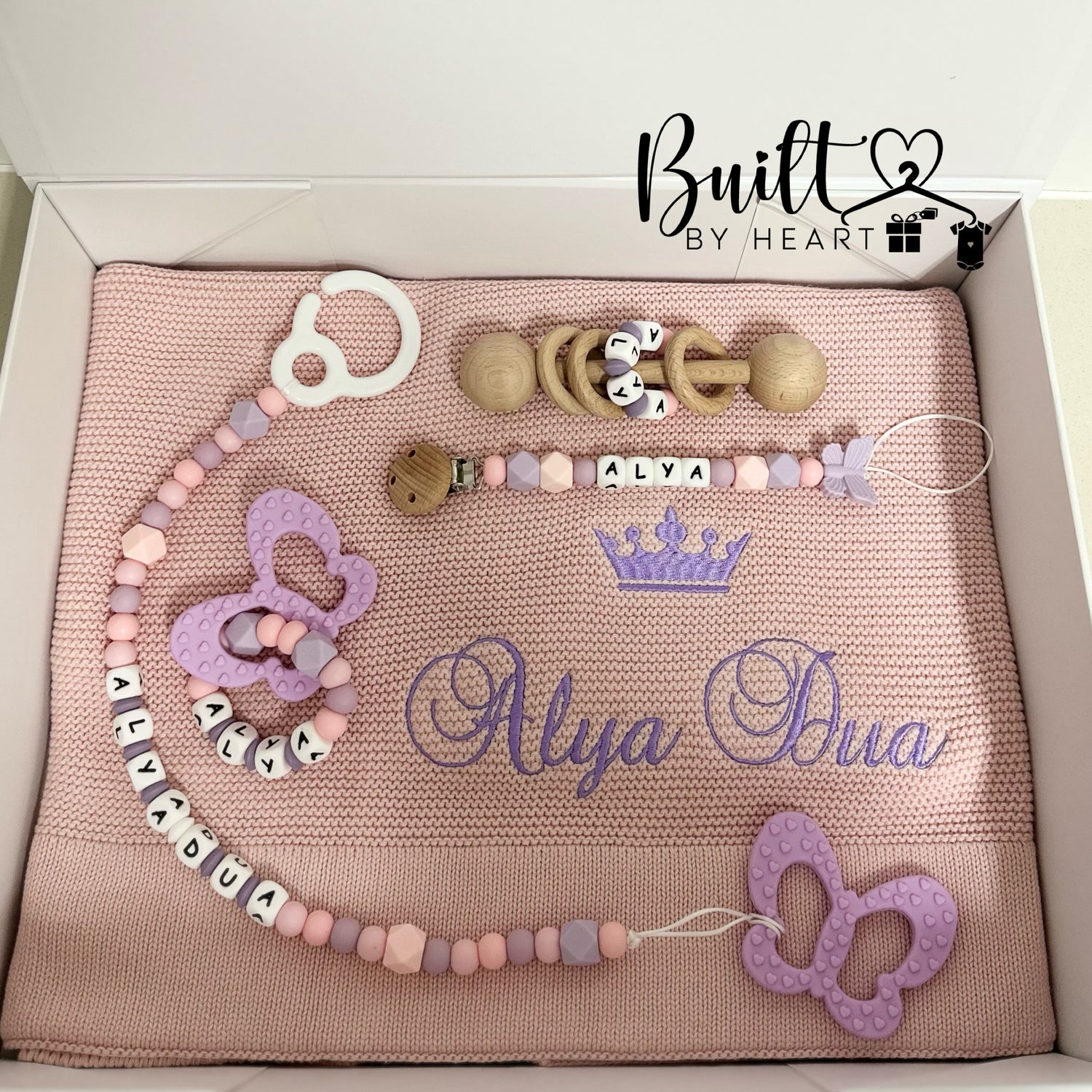 - 1x personalised butterfly teething ring