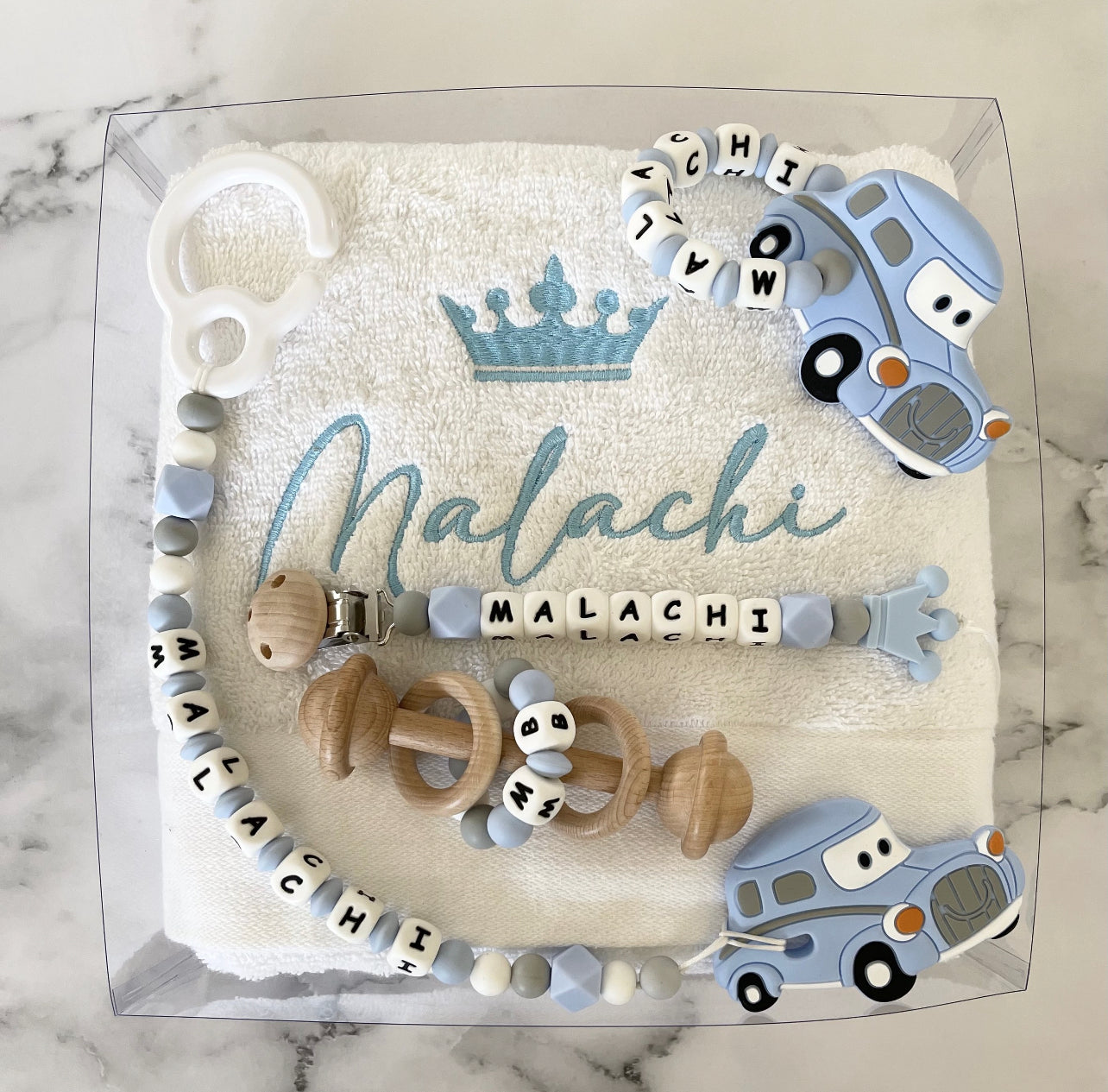 - 1x personalised teething ring